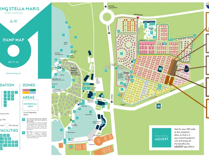 La piscine, entièrement rénovée en 2018, avec un bassin profond et deux piscines pour enfants fera le bonheur de toute la famille. Tout le long du camping s'étend une longue plage (qui a été élue plusieurs fois la plus belle plage de Croatie !), où des chaises longues vous attendent déjà. Les amateurs de sports nautiques s'amuseront également au Stella Maris. Vous pourrez faire de la plongée, du surf, du pédalo ou du kayak. Il existe une marina spéciale où vous pourrez amarrer votre bateau.