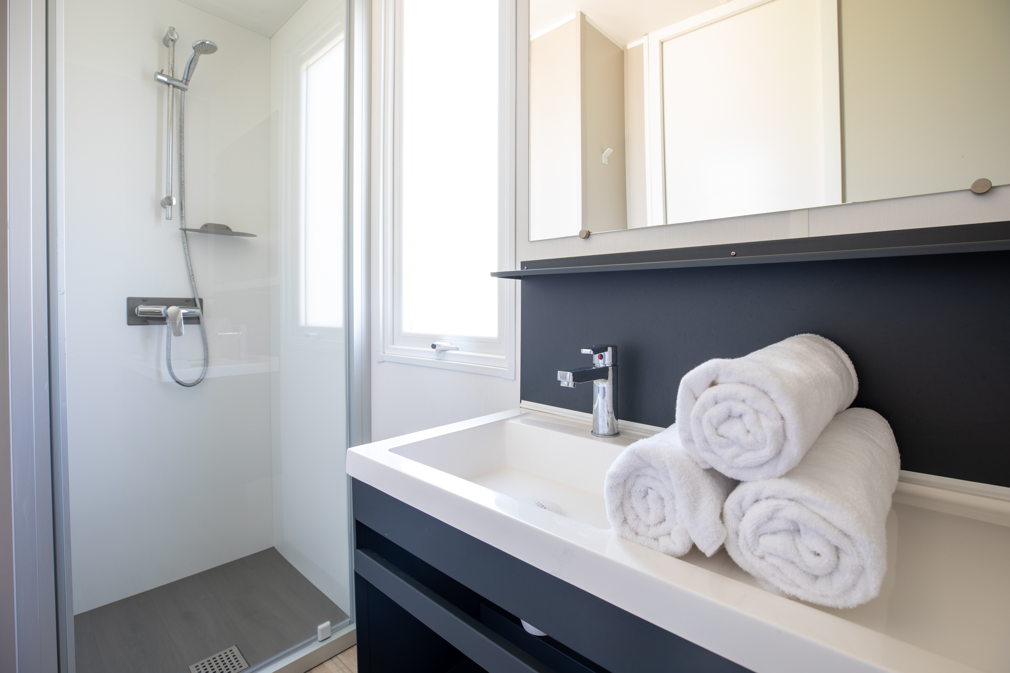 Le complexe de piscines est situé au centre du camping et se compose de deux niveaux ; la grande piscine se trouve au niveau supérieur. Les piscines sont reliées par deux toboggans larges où vous pouvez glisser avec 4 personnes en même temps! La piscine pour enfants avec toboggan, se trouve sur la partie inférieure du complexe. Autour de la piscine, vous pouvez utiliser gratuitement les chaises longues. Vous préférez une journée à la plage, c'est possible! À seulement 15 minutes en voiture du camping, les enfants apprécieront la plage de sable fin!
